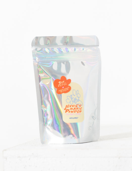 Jessie here! Can I review my own product? I was the first customer and probably most returning customer. By 2016, I'd tried all the dry shampoos out there, and now this is the only one I'll use. I'm picky, and this is just that good. I use Magic Powder from head to toe, as a dry shampoo and as a body powder. It disappears into my dark hair and helps keep me fresh between washes.